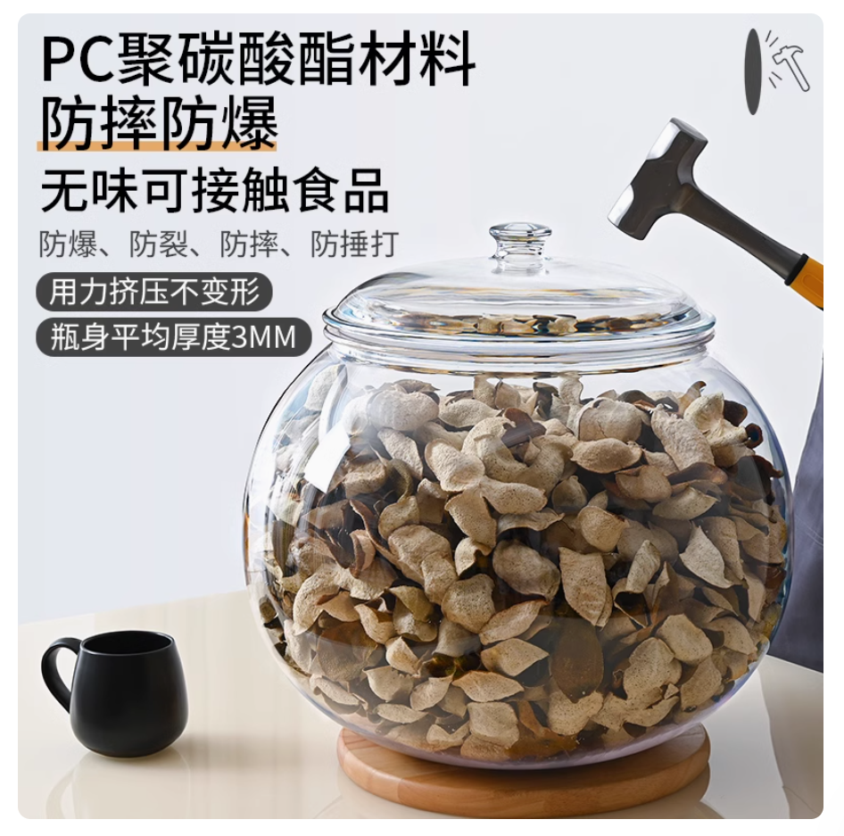 密封罐大号收纳罐PC塑料储物罐非玻璃罐茶叶杂粮小青柑陈皮储存罐